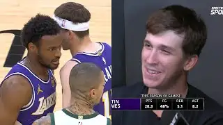 Austin Reaves Lobs It Off Glass To LeBron For Dunk Then LeBron Has Lakers Hyped